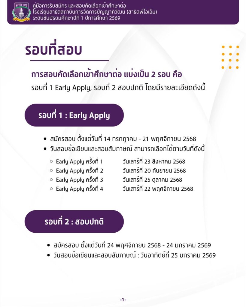 ระดับมัธยมศึกษาปีที่ 1 ปีการศึกษา 2569