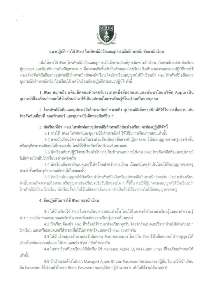 แนวปฏิบัติการใช้ iPad โทรศัพท์มือถือ และอุปกรณ์อิเล็กทรอนิกส์ของโรงเรียน