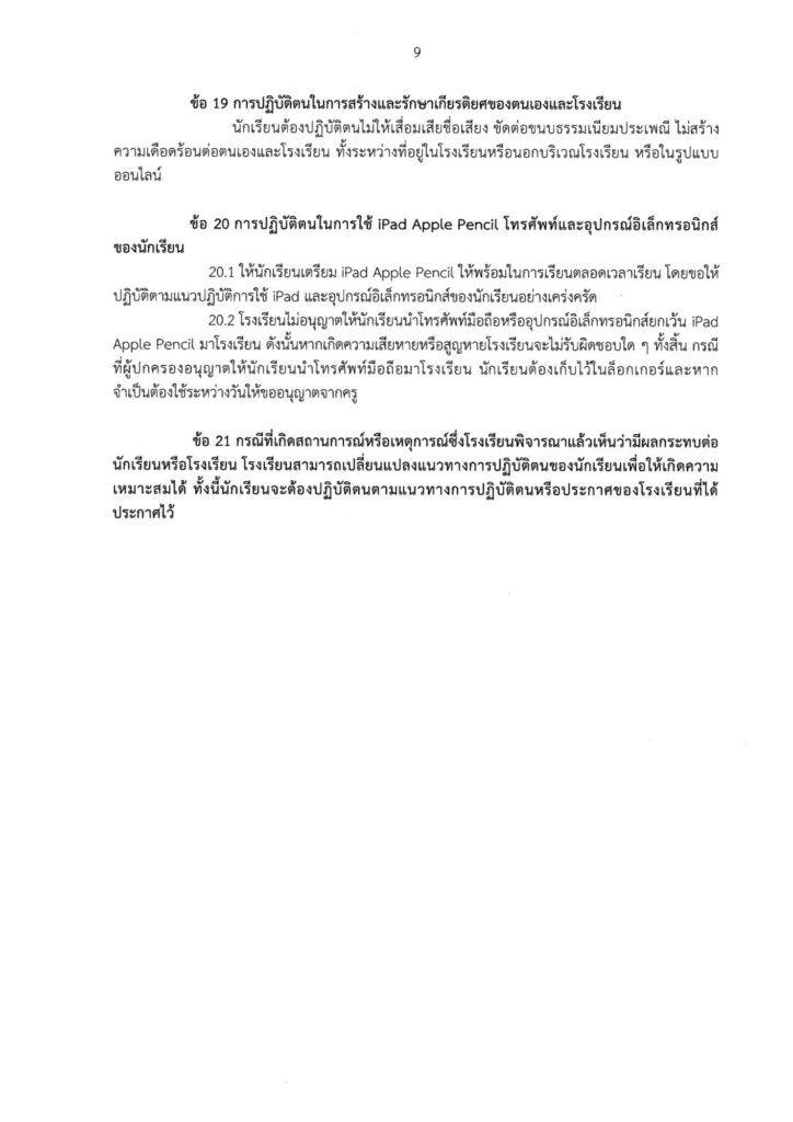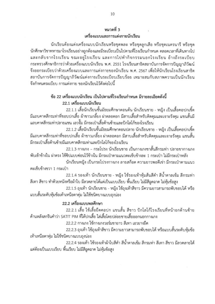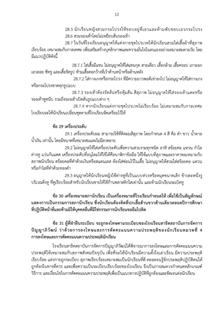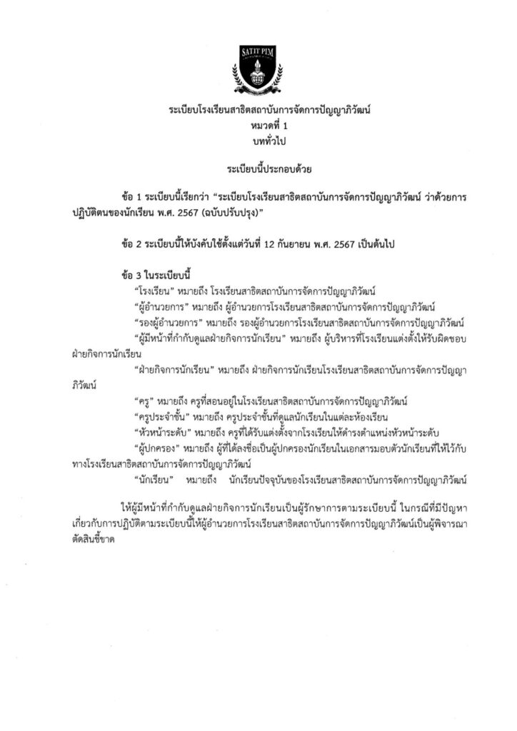 ระเบียบโรงเรียนสาธิตสถาบันการจัดการปัญญาภิวัฒน์