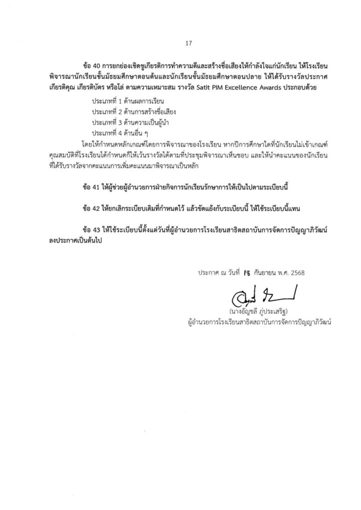 ประกาศ / ระเบียบ โรงเรียนสาธิตสถาบันการจัดการปัญญาภิวัฒน์